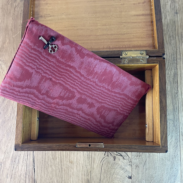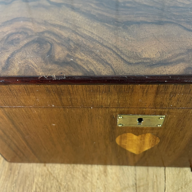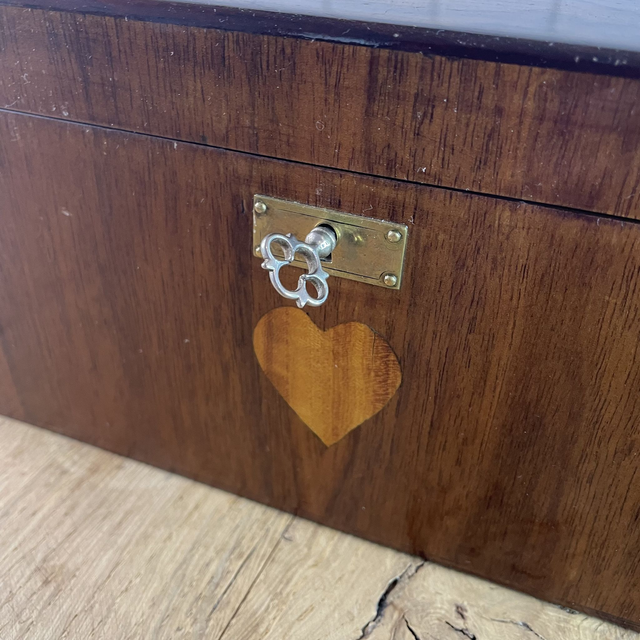 A noter le petit insert en forme de cœur sous la serrure. Une clé est fournie mais ne fait pas fonctionner la serrure.